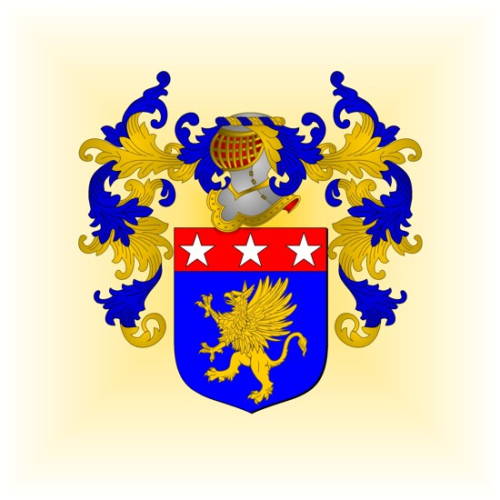 D'azur, au griffon d'or, au chef cousu de gueules, chargé de trois étoiles d'argent.